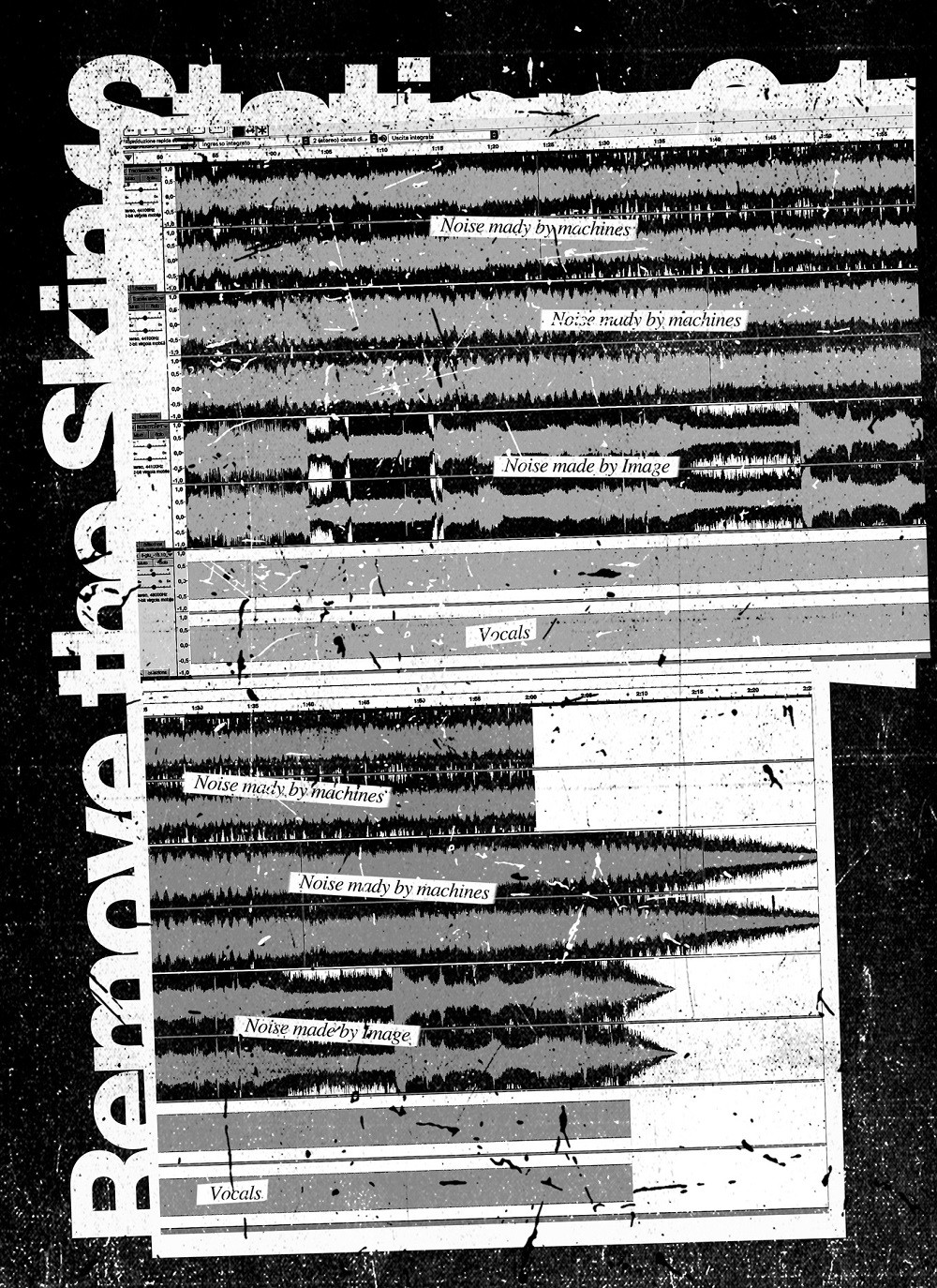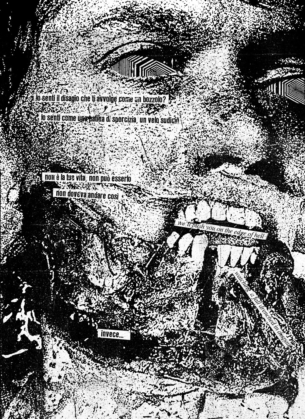 Poi si aggiunge la voce, i testi sono quelli del libro. Noise made by machines, noise made by images. Rumore disarticolato dissonante. Collage sonoro. Officina Infernale spinge la sua sperimentazione grafica oltre i confini del suono, la sua poetica prende parola e ha la voce dell’oltretomba. C’è qualcosa di