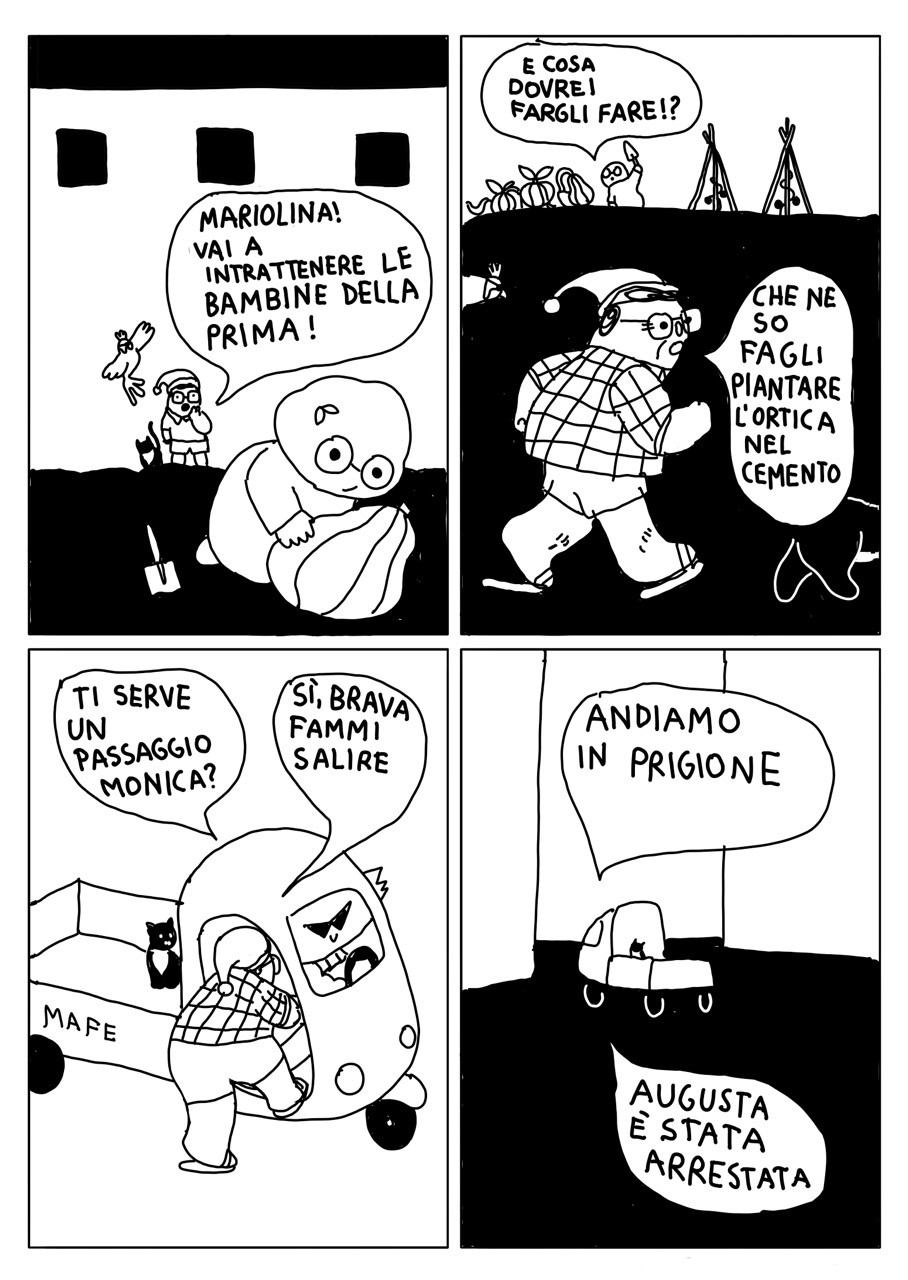 Nel primo capitolo della trilogia è iniziata la rivoluzione, la vecchia scuola di polizia è stata occupata e trasformata in una scuola per bambine butch, lesbiche e trans. Nel secondo capitolo è il momento di conoscere le insegnanti: è lunedì mattina e per le maestre è il momento di recarsi a scuola. Ma lungo la strada Augusta Guzzi viene accusata di oltraggio al pudore ed è in pericolo! La sua pappagalla Samantha dà l’allarme: non c’è un attimo da perdere! Prima di tutto bisogna chiamare la supplente di meccanica, Andy Giò, per non far perdere nessuna lezione alla sua classe e poi tutte insieme – la preside Monica Wittig,il gatto Ambrogio, Vasca Rossa, Marmista Femminista, Towanda Pomodori e Mariolina con le sue piante selvatiche infestanti – dovranno riuscire a salvarla e riportarla a scuola, dove tutte l* bambin* la aspettano.