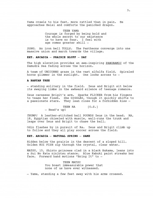 Vi mostriamo in esclusiva alcune pagine estratte dalla bozza dello script di The Godyssey, l’adattamento cinematografico della serie di Rob Liefeld creata nel lontano 1996 e incentrata  sulle antiche divinità Zeus, Buddha, Ra, e Pangu, che devono unirsi per combattere una legione formata da loro controparti.