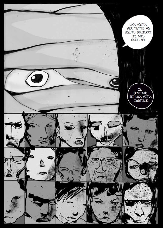 The Eye è un lavoro di notevole spessore e qualità, in cui i dialoghi asettici e senza speranza di Officina Infernale trovano forma nelle tavole di AkaB e nel suo tratto a volte spigoloso, a volte più deframmentato e etereo, capace di cogliere le pulsioni più profonde dell’animo. Un volume che conferma la validità del Progetto Stigma e il suo impegno nel fumetto più sperimentale.