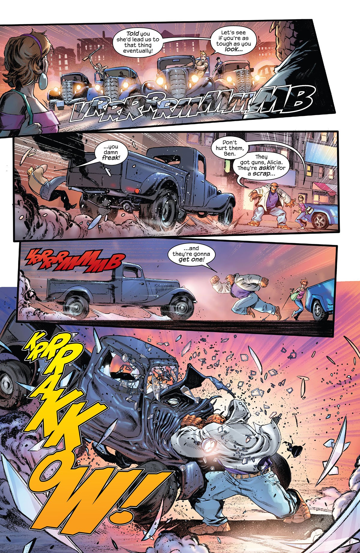 In effetti in questo albo a balzare subito agli occhi è la capacità di North di scrivere un personaggio come la Cosa in modo perfettamente centrato e bilanciato tra la sua innata sensibilità, il suo carattere irascibile ma buono e il mai represso rimpianto per la perdita delle sue fattezze umane.