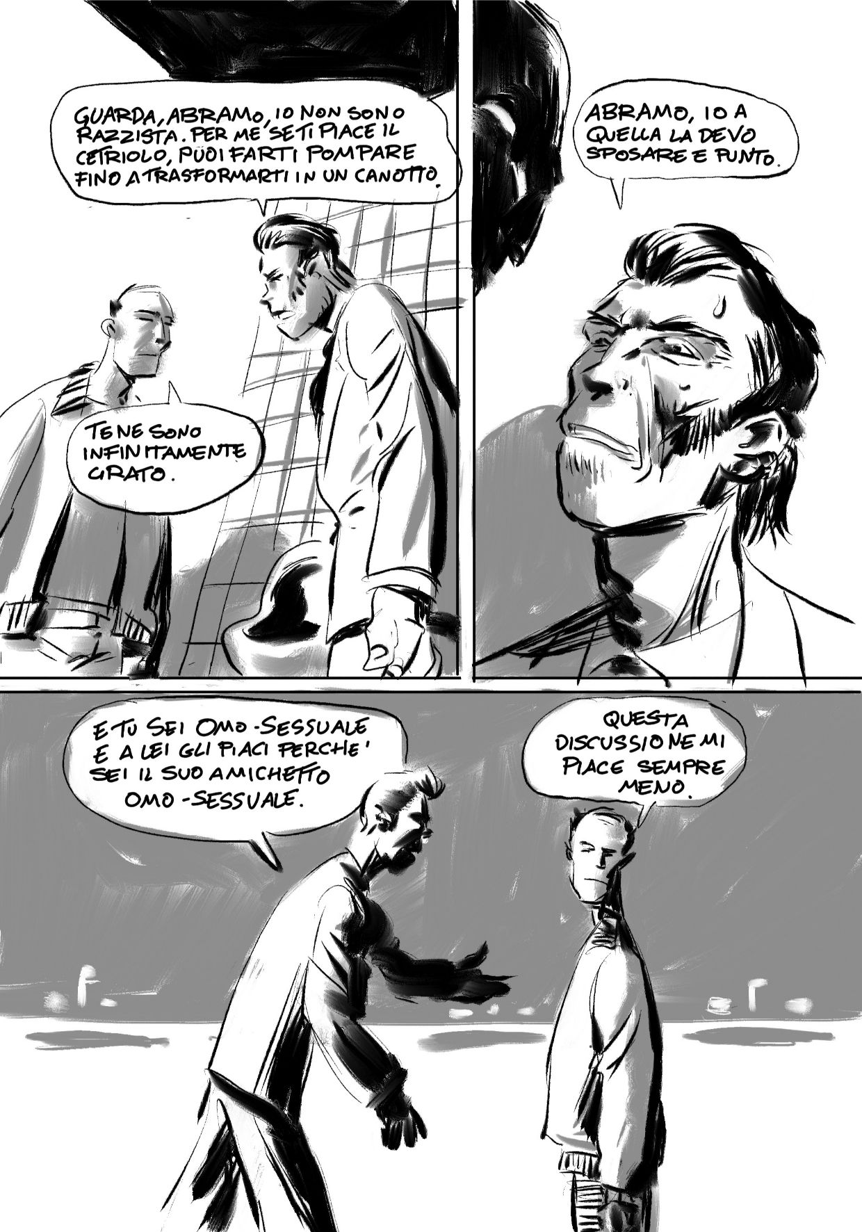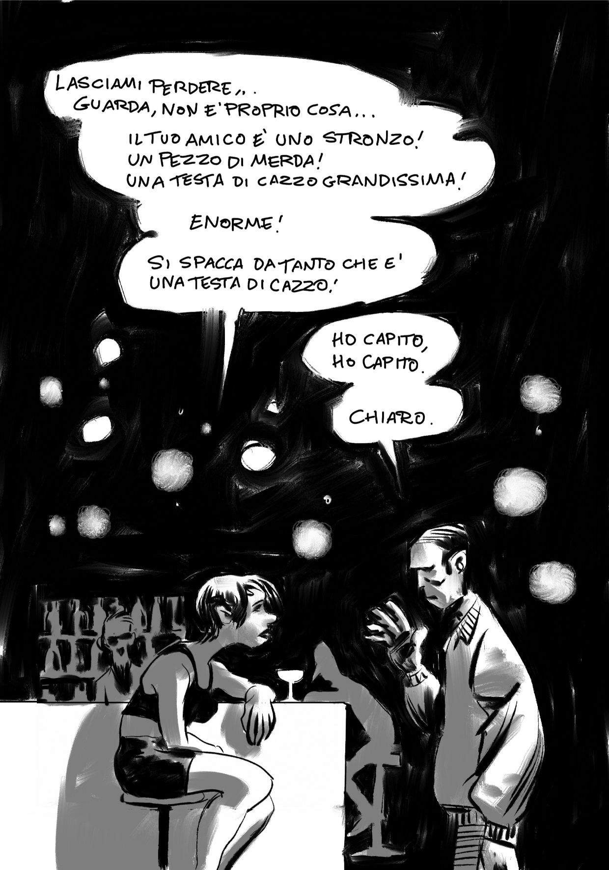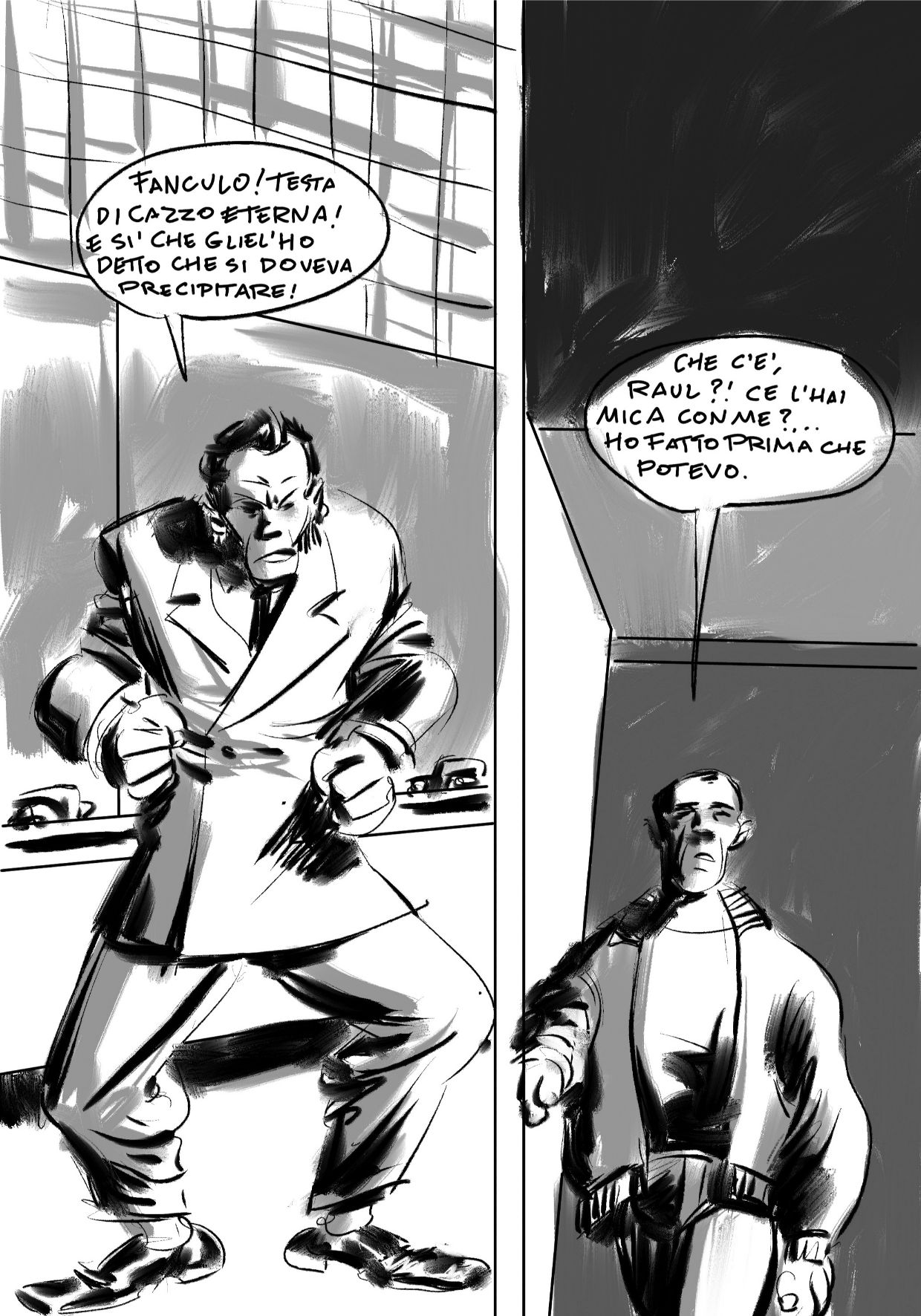 Massimo Semerano completò le sue 24 tavole con cura, raccontando una storia dal tono pulp con personaggi che lasciano intuire tutta una storia pregressa da lasciare all’immaginazione del lettore.