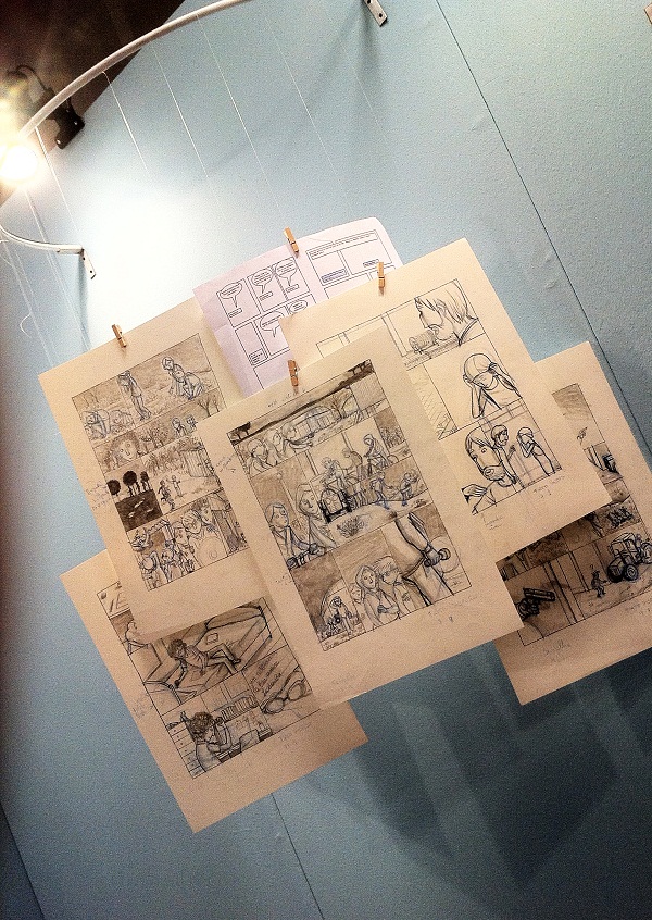 Come ha detto Silvia, non ho ricevuto la sceneggiatura ben definita, ma una via di mezzo tra un trattamento e un testo teatrale, e questo mi ha portato inevitabilmente ad un confronto serrato con lei per costruire in accordo i personaggi. È stato quasi un lavoro di adattamento, una trasposizione a fumetti di un’opera letteraria. Questo vale solo per la fase iniziale. Quando poi è stato chiaro che il suo romanzo non avrebbe visto la luce che sotto forma di fumetto, Silvia si è consegnata mani e piedi e ha scritto sicuramente pensando al mio stile, che tra l’altro conosce alla perfezione.