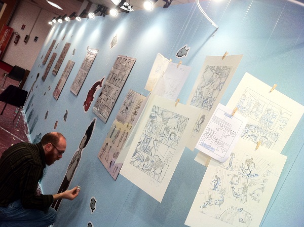 In generale non molto, nel senso che al centro c’è sempre la voglia di raccontare una storia. Una differenza sostanziosa è quella dell’impegno del disegnatore! I fumettisti sono eroi! Il lavoro che c’è in ogni pagina, vignetta per vignetta, inquadratura dopo inquadratura è davvero notevole. Si crea un legame davvero forte con la storia. Alla fine, lasciare i personaggi, pensare che il libro inizia la sua strada è molto emozionante. Un’altra caratteristica è l’impegno della casa editrice nella promozione… Per forza di cose, visto il mercato dei libri e dei fumetti in particolare, è un impegno molto concreto ma credo che sia anche frutto di una maggiore sensibilità. C’è l’idea che il libro vada seguito, accompagnato, facilitando in ogni modo l’incontro con i lettori. E questo si avverte anche nel rapporto con loro. È molto più diretto. Chi legge fumetti cerca gli autori, coglie l’occasione di incontrare chi disegna, è molto portato a confrontarsi e a scambiare opinioni su ciò che ha letto.