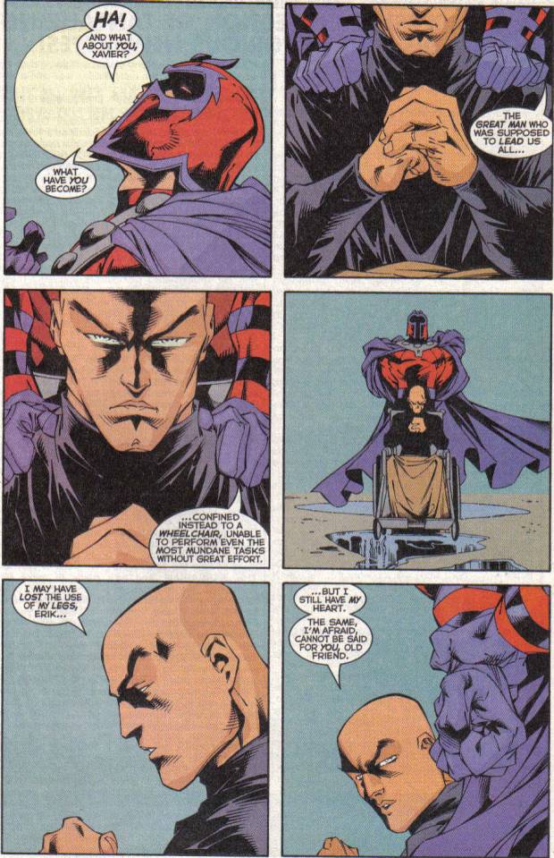 Più che il rappresentare una paurosa minaccia per l’umanità, più che l’esprimere un monito e un rimprovero per una non eroica condotta di vita, l’elemento perturbante che caratterizza i mutanti sembra essere il loro dare espressione, simbolica ma vivida, al conflitto tra normalità e individualità che è connaturato ad ogni uomo: le storie degli X-Men possono essere ben comprese come esempi letterari delle crisi esistenziali attraversate e affrontate da ogni individuo. L’esperienza dei mutanti è angosciosa, assurda, una lotta senza fine, ma l’eterna fatica dei mutanti rappresenta l’infinita e senza senso ricerca che è la vita dell’uomo in generale, rispecchia la ricerca propriamente umana di autenticità e identità. Gli X-Men simboleggiano l’inquietante – e potenzialmente terrificante – realtà della condizione umana.