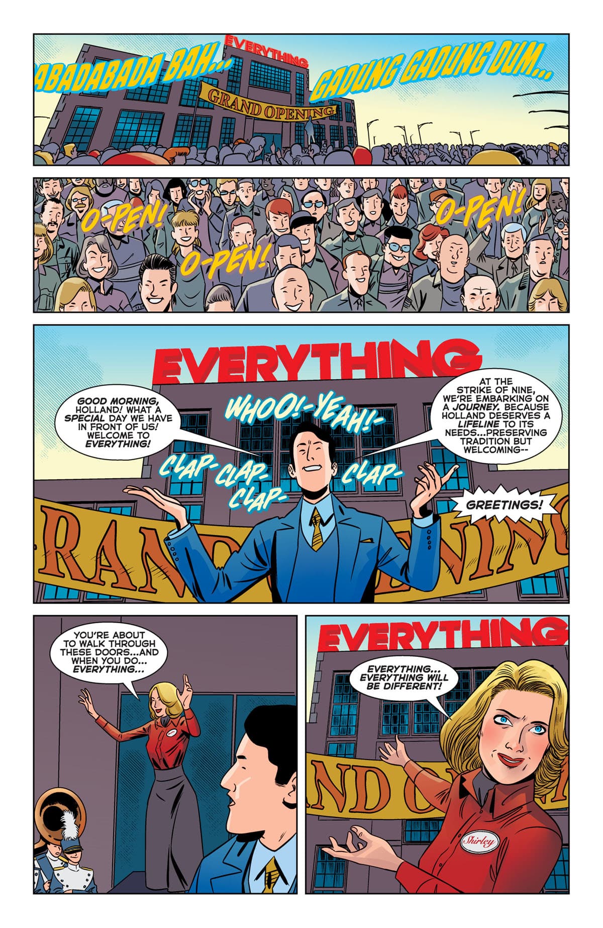 Dark Horse lancia una nuova serie horror, scritta da Christopher Cantwell e disegnata da I.N.J. Culbard. In verità, nel primo numero si registra una certa penuria di elementi horror, a parte per un paio di spunti nel finale. Per di più manca anche un accenno narrativo che possa far intuire di cosa effettivamente parli la serie; si sa solo che il tutto dovrebbe ruotare attorno all’inaugurazione di un centro commerciale denominato “Everything” .