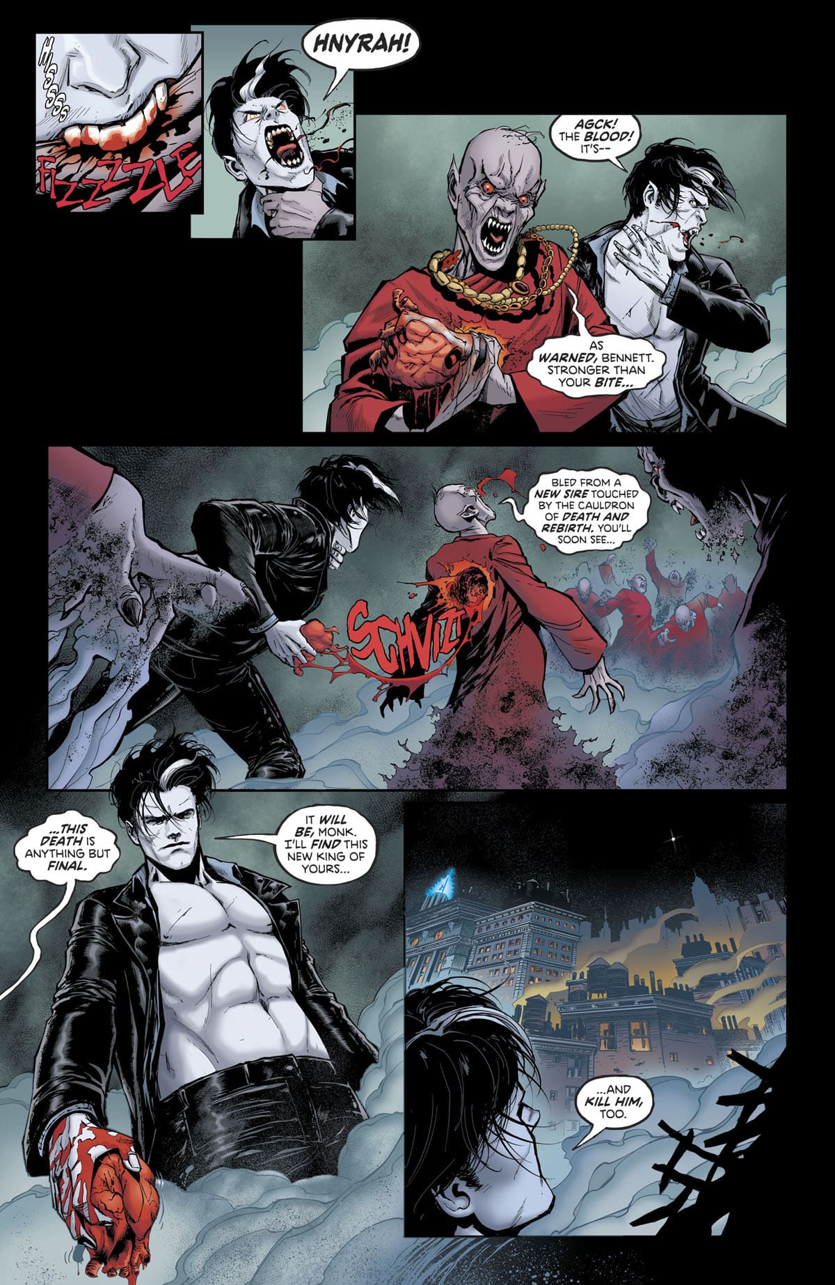 I disegni di Amancay Nahuelpan convincono per la cura delle anatomie e della mimica facciale e non mancano di minuzia, specialmente quando si tratta di rappresentare creature grottesche o scene splatter. Più standard e funzionale la colorazione ad opera di Trish Mulvilhill, pur sfoggiando un paio di buone intuizioni, come le vesti rosse dei monaci vampiro che spiccano in un ambiente cinereo nella scena iniziale.
