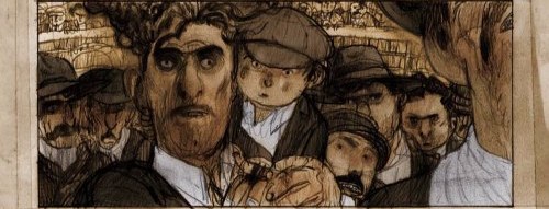 I disegni sono ricchi di dettagli. Tutti i personaggi sono immediatamente riconoscibili per le loro peculiarità fisiche, il che è chiaramente un bene all’interno di una storia al tempo stesso corale e personale. L’autore si diverte a sporcare il tratto ma non per questo il risultato finale è poco chiaro, anzi viene esaltato da un’abbondanza di chiaroscuri soprattutto nelle scene di massa e nei paesaggi.