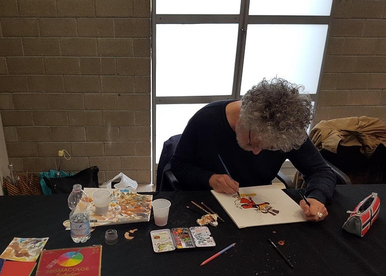 Diciamolo fin da subito: questo è reso possibile da un biglietto di ingresso dal costo elevato, completamente diverso da quello degli altri festival (fino a sette volte il biglietto per Lucca Comics). Il risultato è quindi un luogo suggestivo, nella meravigliosa cornice del lago di Como, in cui più di 30 artisti, seduti ai loro tavoli, disegnano in un’atmosfera rilassata e piacevole per un pubblico internazionale, selezionato e ricercato.