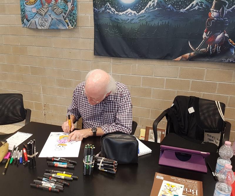 Abbiamo avuto la fortuna di ammirare Juanjo Guarnido realizzare disegni a raffica di Blacksad, con la sua peculiare maestria (abbiamo personalmente provato ad ottenere un disegno, ma domenica mattina la sua lista era già chiusa, purtroppo). Regis Loisel, mentre realizzava un magnifico Bragand a carboncino, ci ha detto che un suo sogno era realizzare una storia di Topolino, pubblicata con Glenat nel 2016, e che gli piacerebbe fare una storia di Popeye, riconoscendo però la difficoltà di riproporre un personaggio così politicamente scorretto restando all’altezza di Segar. Don Rosa, come suo solito, era a piena disposizione per firmare albi, mentre disegnava i suoi tipici paperi. Vendeva anche meravigliosi originali, tra tavole ed illustrazioni, mentre anticipava una decina di novità, che non possiamo ancora anticipare, almeno fino ad ottobre.