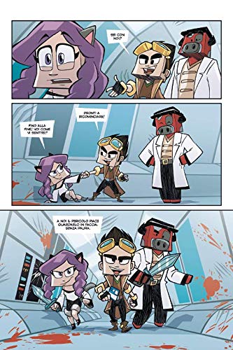 Il fumetto di Lyon è stato primo in classifica come libro di varia più venduto su Amazon per un paio di settimane. Devo dire che quando l’ho notato son rimasto piacevolmente stupito e un pelo incredulo. Il progetto nasce proprio da Lyon, che è l’ideatore dei personaggi e dei video su cui si basano le 10 storie raccontate nel volume. Lyon crea da diversi anni dei video, ambientandoli dentro Minecraft, in cui lui, Anna e Cicotobi se la devono vedere con diversi mostri, misteri e pericoli. Siamo dalle parti dei Creeypasta e di altre simili leggende moderne, qua racchiuse in una base-laboratorio in cui vengono studiati e/o tenuti a bada in ogni modo. Nel tempo i video di Lyon hanno raccontato vicende con una loro continuity, personaggi che tornano e tormentoni che rendono il tutto una narrazione personale di “racconti di paura intorno al fuoco” (o al monitor). Questo aspetto, secondo me, di racconto orale è aiutato dalla narrazione con il voice-over fatta nei video, che coinvolge moltissimo chi ascolta trasportandolo dentro un universo horror pieno di insidie, ma anche umorismo e momenti più leggeri. Con queste premesse avventurose credo che farci un fumetto fosse una delle conseguenze più probabili da seguire, quindi quando mi hanno chiesto di entrare nella squadra come sceneggiatore son stato ben contento di mettermi alla prova. In più i Creepypasta mi sono sempre piaciuti e amo l’horror, per cui mi sono sentito da subito in una zona di genere confortevole.