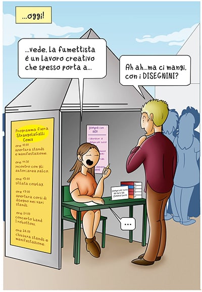 Vendersi è un termine che non mi piace, mi dà l’idea di una costrizione, dunque non consiglierei mai a nessuno di vendersi, soprattutto a discapito del proprio talento. Il mio più che un consiglio è una provocazione, un invito a riflettere sulla facilità con cui gli youtubers riescono ad affermarsi, ad avere successo, a volte senza alcun preciso talento. Sfruttano consapevolmente la propria immagine e approfittano della visibilità che riserva il web, diventando personaggi amati e seguiti da migliaia di persone, che a volte screditano anche il prossimo. In questo modo ironizzo per spiegare quanto sia difficile e impegnativo per noi fumettisti (che lavoriamo e rimaniamo “dietro le quinte”) arrivare al successo, o quantomeno farci conoscere e apprezzare.