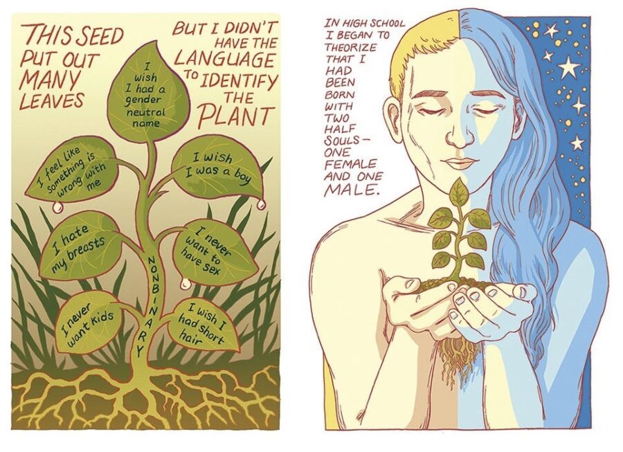 Con la parola “genderqueer” si intende un’identità di genere che non rientra nel tradizionale binarismo di uomo e donna. In Italia è un termine che non si usa molto, mentre è più diffuso un suo sinonimo, ovvero “non-binario”, che, tra le altre cose, è attribuibile anche per definire le persone transgender (cioè persone che hanno cambiato il genere assegnato alla nascita da maschio a femmina o viceversa). In una società che ancora oggi fa fatica ad accettare ciò che non è conforme, questo tema è attualissimo e il memoir di Maia Kobabe è quanto mai necessario, in questo senso.