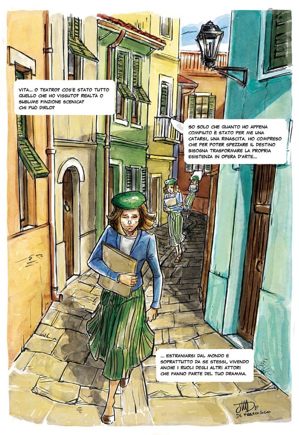 Mi sono reso conto di una cosa: sperimento per piacere personale, per arrivare a quella sintesi che ho gustato nei fumetti che seguivo da lettore, nelle opere appunto di autori come Eisner e De Luca, senza volermi paragonare direttamente a loro. In questo modo la sperimentazione, e il lavoro che faccio per continuare a portarla avanti, è un processo attraverso il quale mi sto conoscendo. Quindi non è qualcosa legato al voler attirare l’attenzione, cerco di appagare innanzitutto me stesso. Nel caso di Charlotte Salomon, al di là del giudizio che spetta al lettore, mi sono disinteressato completamente del compiacimento del pubblico e – da autore ancora medio quale mi ritengo – penso sia già un bel traguardo.