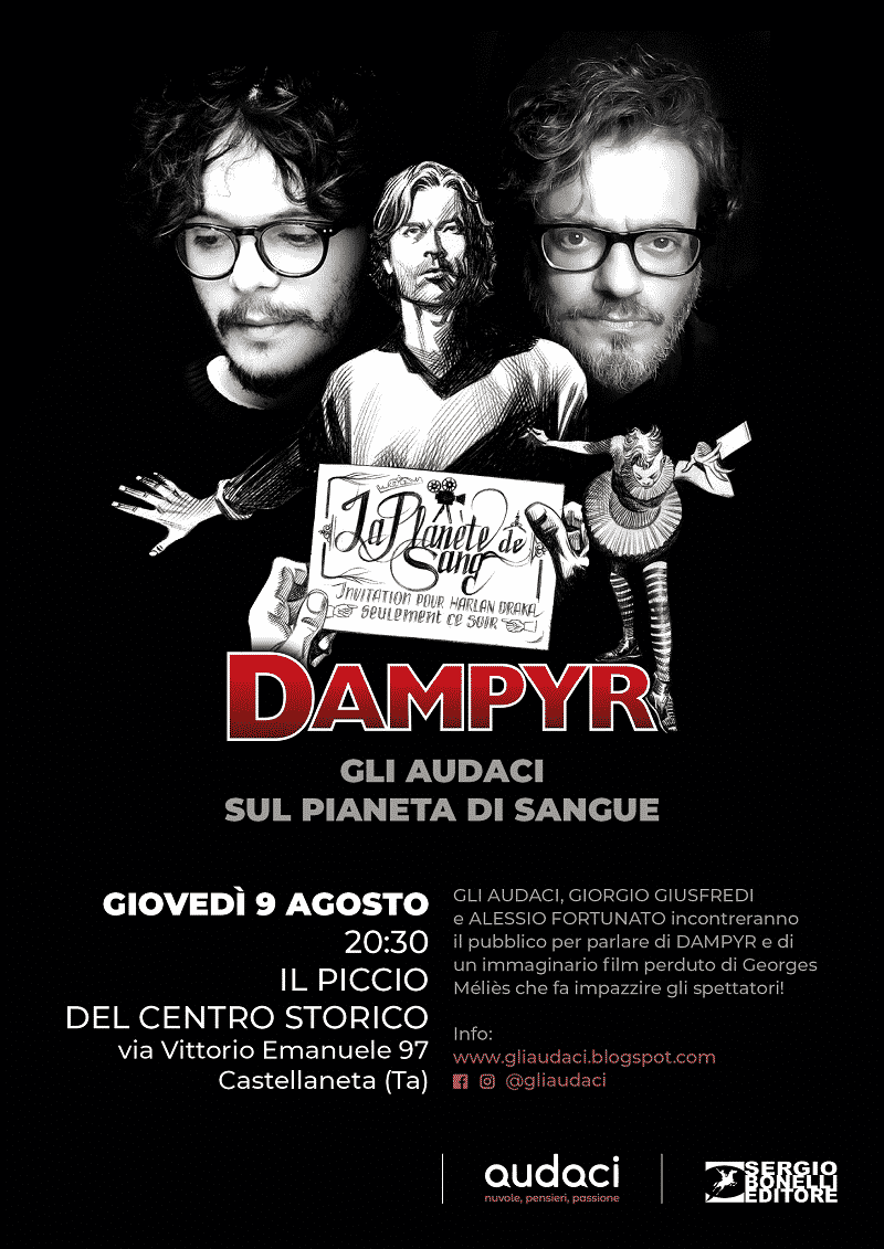 L’inizio dell’incontro è previsto per le ore 20:30 e sarà incentrato sull’albo di Dampyr, in edicola dal 3 agosto, e su un immaginario film perduto diretto da Georges Méliès, in grado di far impazzire gli spettatori.