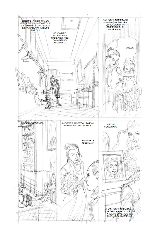 Magnus mi ha insegnato che qualunque cosa disegni devi disegnarla al massimo delle tue possibilità senza mollare. Io cerco di utilizzare soluzioni grafiche differenti per tipologia di segno, ma ugualmente intense! Non so se ci riesco sempre, ma questo è il mio obiettivo. Diabolik (o meglio il suo mondo) è ad oggi il personaggio che più ho disegnato; ormai è uno di famiglia…