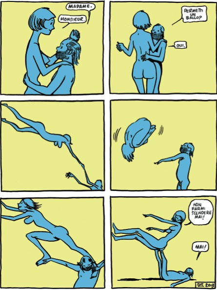 140 tavole, suggestive come canzoni, raccontano i pezzi di un’esistenza speciale. La rappresentazione fotografica ci restituisce Davide che suona negli stadi italiani, nella sua veste pubblica di Eltofo, il cantante vestito da Yeti del gruppo Art Rock Tre allegri ragazzi morti. Davide diventa poi fumetto nell’intima identità di Davide Toffolo, a casa, impegnato a disegnare e a capire il mondo e se stesso. A fargli visita nella sua casa laboratorio persone reali, fantasmi del passato e affetti che non ci sono più. Con lui Andy Kaufman, suo oracolo personale, e Pepito, la sua “spalla comica”, un piccolo pappagallo domestico, che lo accompagna nel suo viaggio interiore e in un passato talvolta doloroso e che offrirà alla fine del racconto un divertente colpo di scena. Si ride e si piange, nel nuovo libro di Davide Toffolo. Come anche nella vita reale.