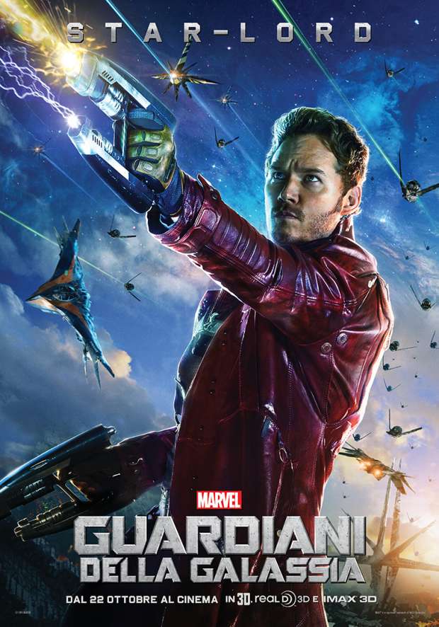 Diffusi i character poster italiani di Guardiani della Galassia, l’adattamento cinematografico del gruppo cosmico della Marvel diretto da James Gunn in uscita nelle nostre sale il prossimo22 ottobre. Li potete vedere di seguito. Peter Quill (Chris Pratt)  Peter Quill è un avventuriero interstellare che da giovanissimo è stato rapito dalla Terra. In seguito al ritrovamento di un antico reperto, si pone al comando di una squadra di idioti cosmici per combattere contro un essere malvagio e potente che vuole distruggere l’intera galassia. Groot (voce originale di Vin Diesel) Groot discende da una pianta che cammina e somiglia a un tronco