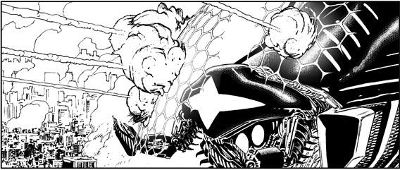 Il merito della grande spettacolarità di questo numero è da attribuire assolutamente anche ad un Giancarlo Olivares che raggiunge probabilmente il suo apice nella sua lunga collaborazione con l’agente del futuro. Anni ed anni di studi preparatori, di schizzi e prove, per ottenere un risultato davvero esaltante, una continua gioia per l’occhio del lettore. Attraverso anche un sapiente uso del computer, le vignette di Olivares appaiono tutte dettagliatissime ma mai pesanti, ostentando un equilibrio compositivo invidiabile. Nettamente più a suo agio con le vignette panoramiche e d’insieme, Olivares riesce ad enfatizzare la regia della sceneggiatura in maniera drammatica e visivamente potente (l’ultima vignetta di pag. 83 è probabilmente l’emblema di questo lavoro), segno di come la sinergia fra i due autori dell’ex Gruppo Hammer sia ormai pressoché perfetta.