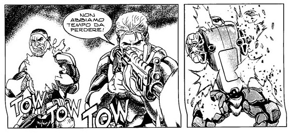 Le qualità di Stefano Vietti qui esplodono in tutta la loro forza: lo sceneggiatore bresciano si è sempre trovato perfettamente a suo agio con questo genere di racconti, e la sua esperienza (maturata anche con la saga precedente, la Guerra con le Stazioni Orbitanti) lo porta a realizzare un albo altamente spettacolare ed efficace. Nonostante sia tutto azione e catastrofi, “Distruzione! ” non risulta assolutamente veloce da leggere, tutt’altro. Vietti riesce a far interagire molteplici situazioni umane sullo sfondo di una città violentemente stuprata, e di cui crediamo rimarrà ben poco dopo la fine di questa maxi saga.