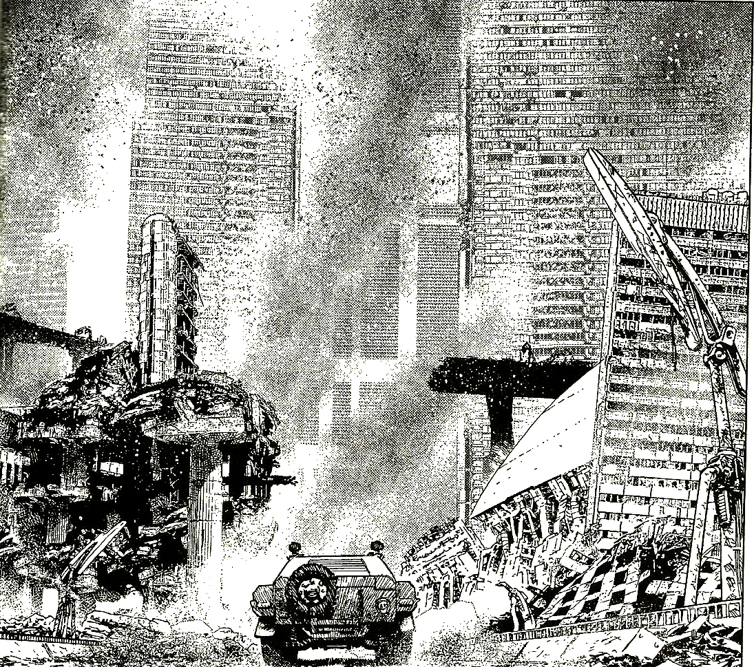 Nell’albo n. 243 avevamo lasciato un Nathan Never più che mai deciso a mollare l‘Agenzia Alfa, pochi minuti prima che i tripodi marziani sferrassero l’attacco alla Città della Costa Est. “Distruzione! ” (un titolo che più bonelliano non si può) si collega direttamente a questi avvenimenti: dopo il preambolo dedicato alla spettacolare liberazione di Aran Darko dal carcere, da pag. 10 la narrazione è un continuo tripudio di esplosioni, distruzioni, squillanti onomatopee e catastrofismi assortiti, che si uniscono ad un susseguirsi di micro-vicende che vanno ad arricchire un soggetto che altrimenti sarebbe stato pericolosamente povero.