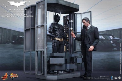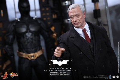 La Hot Toys ha diffuso nei giorni scorsi le prime immagini di una nuova linea di action figures basate sulla trilogia cinematografica dell’uomo pipistrello diretta dal regista Christopher Nolan che riproducono fedelmente gli attori Christian Bale e Michael Caine nei ruoli di Bruce Wayne e Alfred Pennyworth accanto a una armeria di Batman, replica precisa di quella vista nei film Il Cavaliere Oscuro e Il Cavaliere Oscuro – Il ritorno.