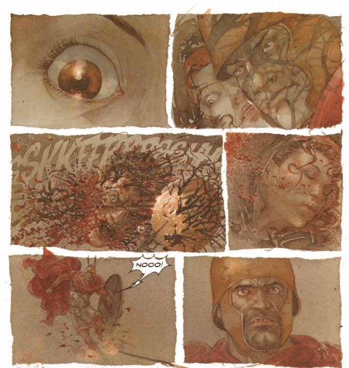 Foreste di morte si propone come un volume d’eccezione che riesce a trascinare il lettore nel cuore della Silva Litana, merito dovuto in particolare alle tavole di Tisselli. I colori tendono al grigio, è una foresta dove il sole (la “luce” di Roma) non riesce a penetrare; persino il rosso del sangue si mischia con il nero dei rami, tanto da rendere difficile distinguere gli uomini dalle piante che li hanno uccisi. Le vignette si susseguono strette e frenetiche, contribuendo a dare una sensazione di claustrofobia, come se la foresta stesse lentamente inghiottendo i personaggi. Le lunghe sequenze prive di dialoghi trasmettono lo stesso, terribile silenzio che i Romani devono aver percepito poco prima dell’agguato. Un silenzio inquietante e innaturale, messaggero di morte.