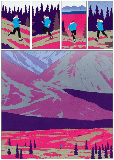 A contribuire al grande impatto artistico ci pensano anche i colori, che anche nelle precedenti opere svolgevano un ruolo centrale. Ne I pizzly il colore diventa piatto e la tavolozza si tinge di colori al neon nei toni del rosa acceso, del viola e del fucsia ispirati non da elementi umani, ma dalle aurore boreali e dalle luci dei tramonti del nord, che contrastano ma al tempo stesso si legano con il verde intenso degli abeti, il marrone dei tronchi, il grigio delle acque gelide di fiumi e torrenti e soprattutto il bianco di nevi e ghiacciai: quasi a dire che anche ciò che può apparire più strano e più “alieno” può in realtà trovare spazio nella natura, nel suo equilibrio quasi mistico. Come un pizzly, che è nato dal cambiamento climatico ma che ha una sua dignità di esistere. Come tre ragazzi di città che hanno imparato a vivere seguendo regole nuove. Una storia di ricerca di armonia, di ricerca di una identità e di una convivenza possibile e necessaria, narrata da un talento che non smette mai di stupire.