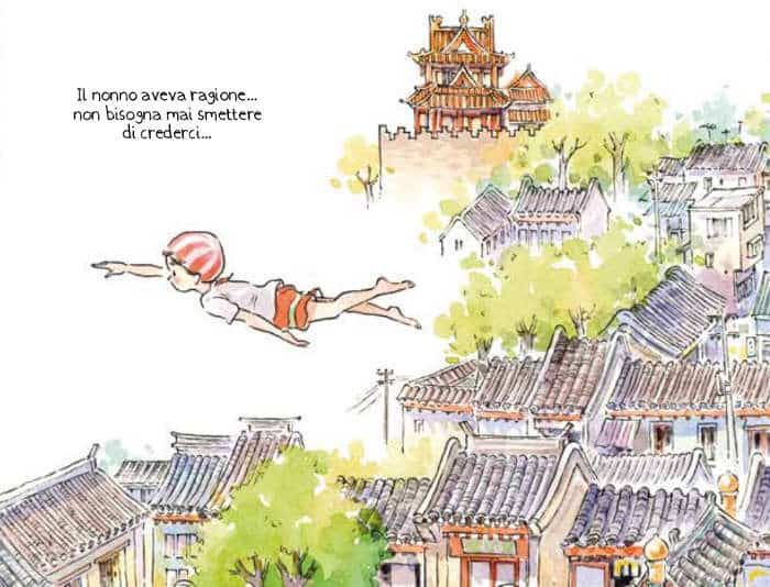 Nie Jun, però, utilizzando come protagonisti la piccola Yu’er affetta da una disabilità e il suo amorevole nonno, mescola la vita quotidiana con quel pizzico di fantastico che non stona con l’atmosfera generale, ma anzi la completa donando al volume un’aura poetica che richiama le opere di Hayao Miyazaki. Tra l’altro anche il tratto chiaro e tondeggiante di Nie Jun è chiaramente influenzato da quello del maestro nipponico, cui il fumettista cinese aggiunge l’uso di una colorazione acquarellata che enfatizza le atmosfere magiche della vicenda.