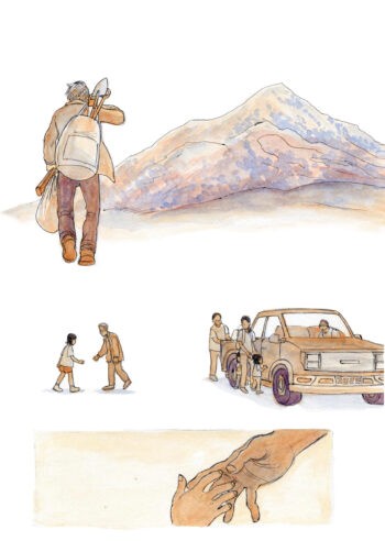 Wang abitua il lettore a tavole con ottimi scorci naturali e paesaggi capaci di far rivivere l’entroterra californiano (complice anche un ampio utilizzo di colori caldi che rendono il tutto più intimo), prestando però il fianco laddove si arrivi alla rappresentazione grafica delle persone: in linea con ciò a cui hanno abituato altre opere mirate a un pubblico di riferimento young adult, volti e personaggi peccano di originalità e varietà, portando a un lieve senso di distacco nel momento in cui Ash interagisce con altri personaggi. A questa semplicità strutturale e grafica si contrappone però una complessità che richiede al lettore di scavare nell’esperienza di Ash, diventando un secondo viaggiatore insieme al protagonista.
