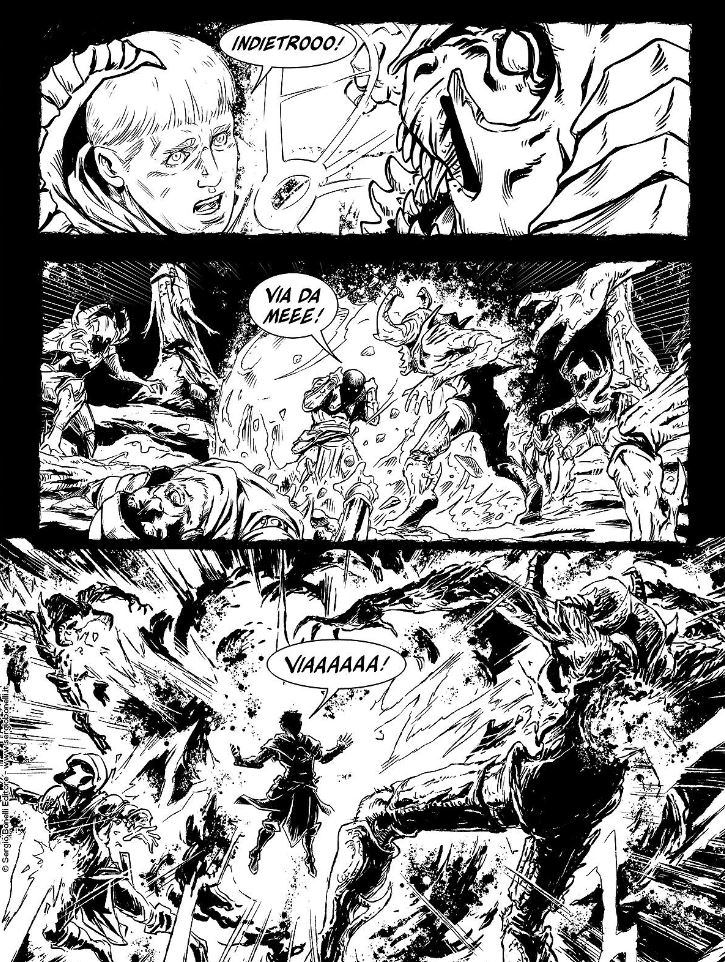Anche Pagliarani offre una prova di livello nel flashback rivolto ad alcuni avvenimenti che risalgono al “primo giorno”, ossia il momento in cui gli abominii hanno invaso l’Erondàr: una sequenza frenetica e devastante interpretata con la consueta attenzione ai dettagli e con l’accento posto su pose e anatomie dei protagonisti.