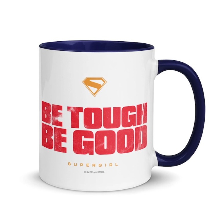 Altri articoli della colezione sono un adesivo olografico con il logo al neon e una tazza con la scritta “Be Tough, Be Good”.