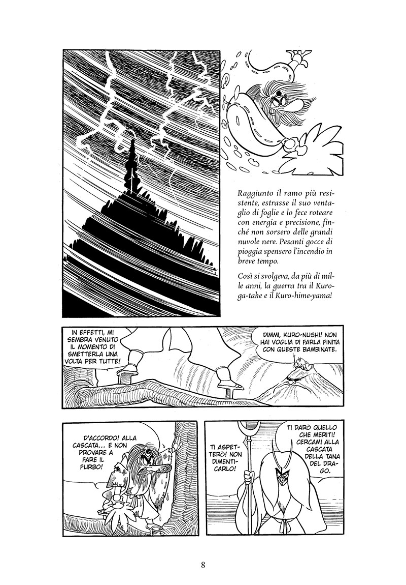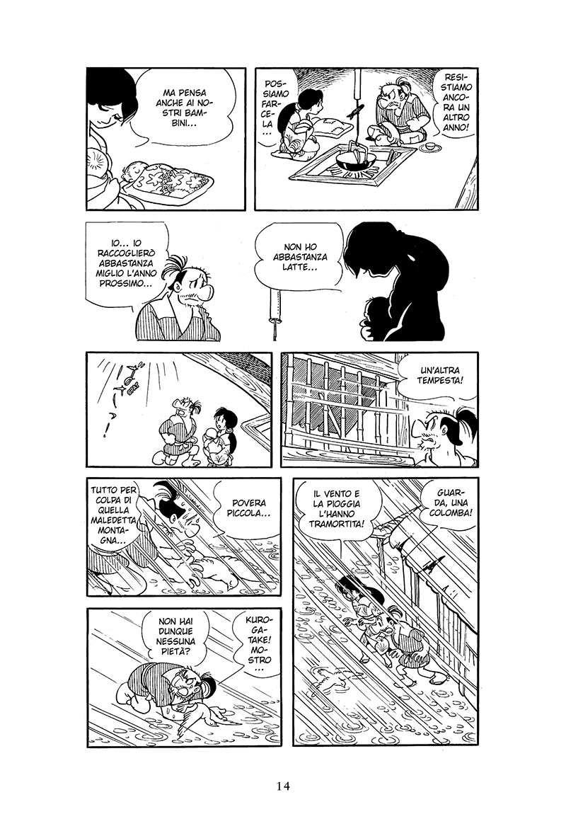 Nel Giappone feudale popolato di spettri, samurai e divinità litigiose, i piccoli Hato “la colomba” e Taka “il falco” vengono allevati dallo spirito protettore di una cascata. Cresciuti con una forza e un’agilità quasi sovraumane, Hato e Taka affrontano mostri, combattono ingiustizie e cercano il loro posto in un mondo tormentato da divinità litigiose e dall’avidità degli uomini. Ispirata alle leggende del folklore nipponico, Il falco e la colomba è una saga fiabesca che rappresenta un esperimento unico nella sterminata bibliografia di Osamu Tezuka, ed è una delle storie a cui l’autore affermava di essere più affezionato.