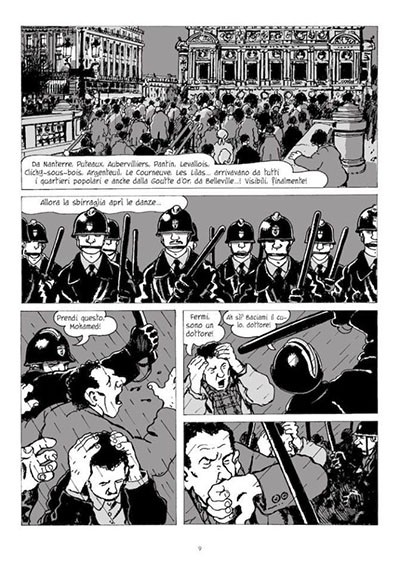 In Italia per trovare qualcosa di analogo possiamo fare riferimento a Cani sciolti, la serie che Gianfranco Manfredi (altro autore, non solo di fumetti, il cui impegno politico in quegli anni è ben noto) ha pubblicato qualche anno fa per Sergio Bonelli Editore sotto l’etichetta Audace. Che però, a differenza dell’opera di Grange e Tardi, usa lo sfondo storico del movimento studentesco italiano per una storia di fiction, laddove Elise è, a tutti gli effetti, una tetimonianza per immagini – seppur da un punto di vista non oggettivo – che illustra eventi ancora oggi importanti per capire determinati contesti sociali e politici europei.