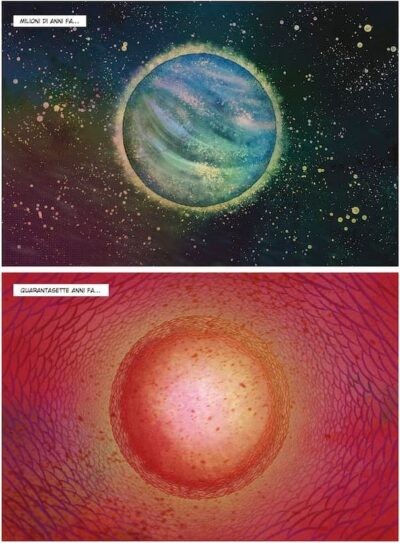 , David Rubin non rinuncia a interpretare l’ambiente fantascientifico che fa da sfondo alla storia. Il filone predominante è quello della hard sci-fi – si basa quindi su una tecnologia realistica – e propone qualche elemento di anticipazione con soluzioni pragmatiche e un comparto tecnico plausibile come l’utilizzo di stampanti 3D evolute, programmi di terraformazione o sviluppi medici e scientifici rivoluzionari. Anche al cospetto delle meraviglie di un mondo che ha saputo combattere fenomeni come l’innalzamento degli oceani, aleggiano però una serie di domande espresse direttamente dai personaggi o da leggere fa le righe: qual è il prezzo che si è disposti a pagare per la tecnologia? Ha senso salvare l’umanità, o meglio quella parte di umanità corrotta e moribonda che può permettersi di essere salvata? Fra i dubbi, le perplessità, le rivelazioni, il declino totale che Alexander deve affrontare, si innesta poi la domanda più importante di tutte: perché salvare gli altri, se non posso salvare me stesso?