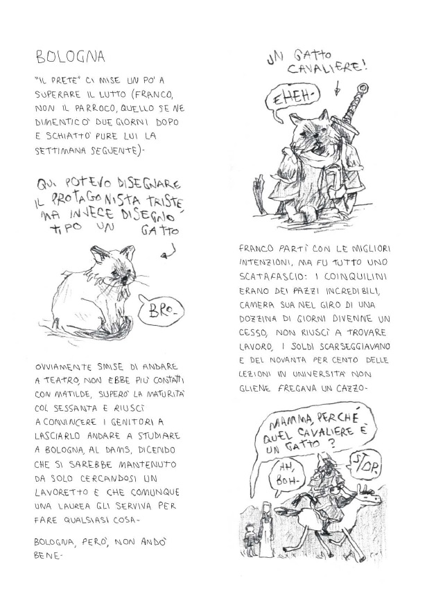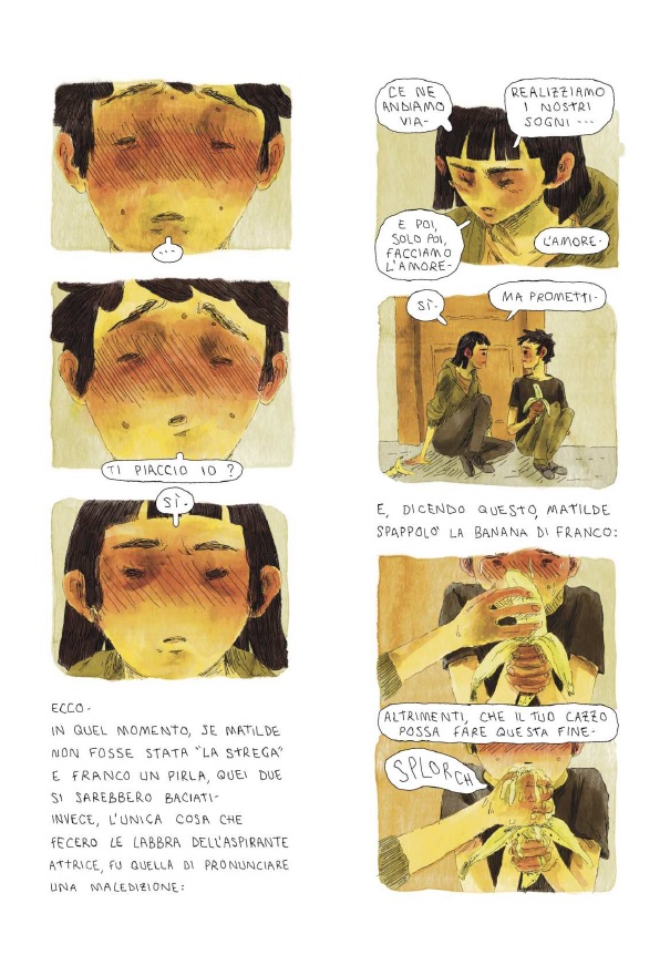 In breve: Franco è un ragazzo chiuso e schivo che vorrebbe fare il regista, ma le cose non sempre vanno come vogliamo. Va a Bologna, torna a casa. Trova un mentore, si innamora, ma forse no. Ma diciamo pure di sì. Una maledizione gli trasforma il pene in una banana. il resto non ve lo rivelo, leggete il fumetto.