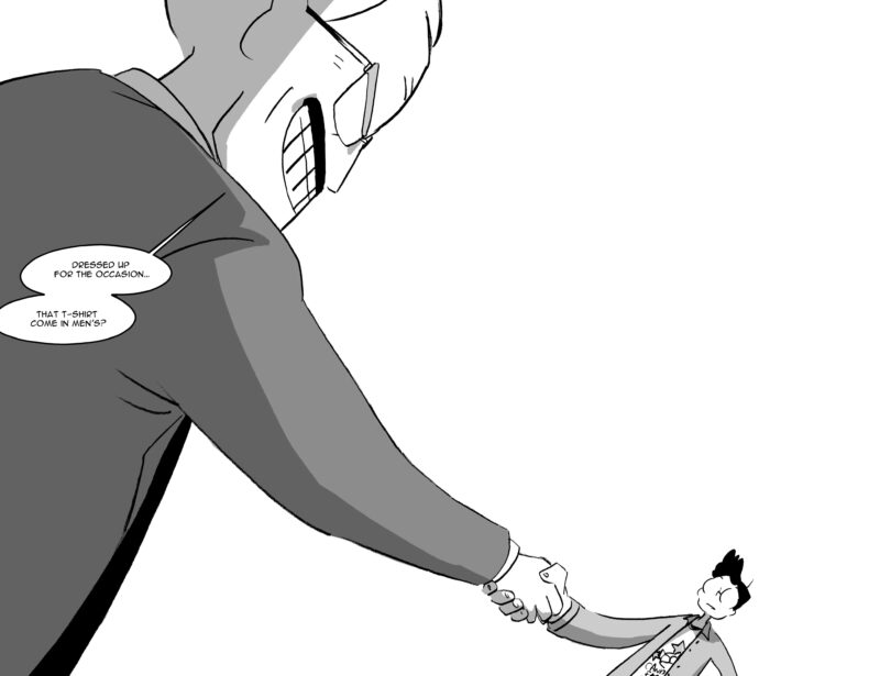 Ken Niimura riesce a catturare sia i momenti di scontro più fiammeggiante, grazie al contrasto tra caratterizzazioni grafiche – sopra le righe quella del sergente (bocca e lineamenti aguzzi, occhi dallo sguardo ferino) e più morbida quella del figlio (grossi occhiali tondi, capelli voluminosi, linee tenui)- sia i momenti più intimi e intensi, grazie a pochi semplici tratti, con la gestione delle ombre che oscurano uno sguardo, o l’inclinazione di una testa che spiega più di mille parole un senso di atterrimento: la padronanza nel rappresentare microespressioni e gestualità minime è totale. E questa sensibilità dell’artista colpisce ancora di più perché si alterna con grande sapienza al ritmo vorticoso che caratterizza la storia.