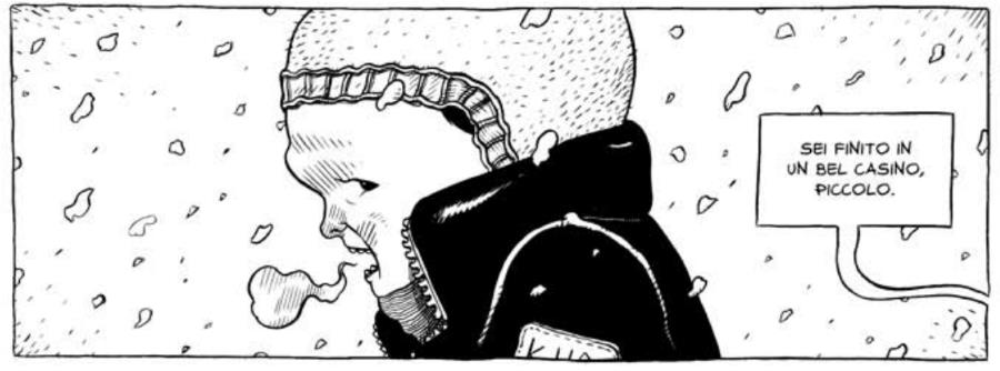 In una italia di periferia decadente e abbandonata si sviluppa un racconto che salta tra una realtà squallida e un mondo onirico fatto di animanli guida e ricordi stravolti e trasformati in favole dark. Questa specie di corruzione della realtà con un immaginario orrorifico mi ha fatto pensare a Tony Sandoval, e anche per i personaggi che, pur con due stili distanti l’uno dall’altro, trovo abbiano qualche affinità nella caratterizzazione, sospesi tra essere dei freak e l’avere uno strano e inquietante fascino.
