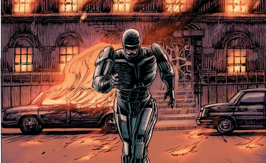 Anni dopo è Steven Grant (autore e creatore tra gli altri del vigilante X per il Comics Greatest World della Dark Horse Comics) a prendere le due sceneggiature per i film e a convertirle in fumetti. Per il primo viene scelto Juan José Ryp, uno disegnatore adattissimo nonostante la sua rigidezza a rendere una citta sporca, grondante liquami, abitata da gente disperata e governata da impiegatucoli senza scrupoli assetati di potere e incapaci di pietà.