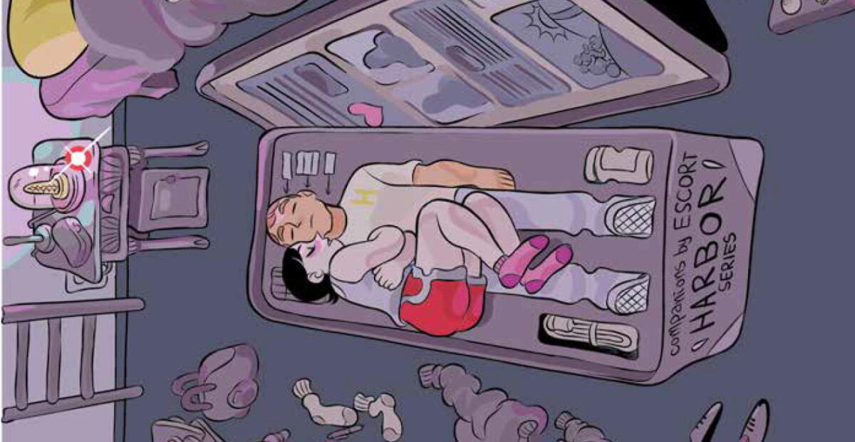 Delebile è un collettivo di autoproduzioni che, oltre ai propri membri, nel tempo ha pubblicato opere dall’estero. Come questo Diana e la lingua robotica, un romanzo breve a fumetti che usa uno spunto fantascientifico – l’acquisto da parte della Diana del titolo di di un escort robotico – per parlare di sentimenti e di vite come tante. Diana è ancora scottata da una storia d’amore finita, e il robot, dalle perfette fattezze umane, è l’occasione per sentire qualcuno vicino, attento ai suoi bisogni e sentimenti. Attenzioni frutto di una programmazione, ma che comunque sanno di calore. Che magari non sono sufficienti a cancellare i dolori di un cuore ancora dolorante, ma che aiutano.