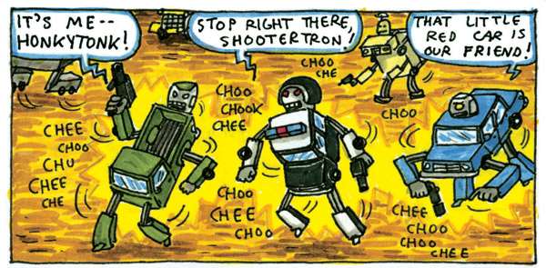 Il tratto infantile si presta molto bene alle divertenti gag di cui il libro è pieno e i veri amanti dei Transformers apprezzeranno sicuramente di più Incredible Change-bots del recente blockbuster.
