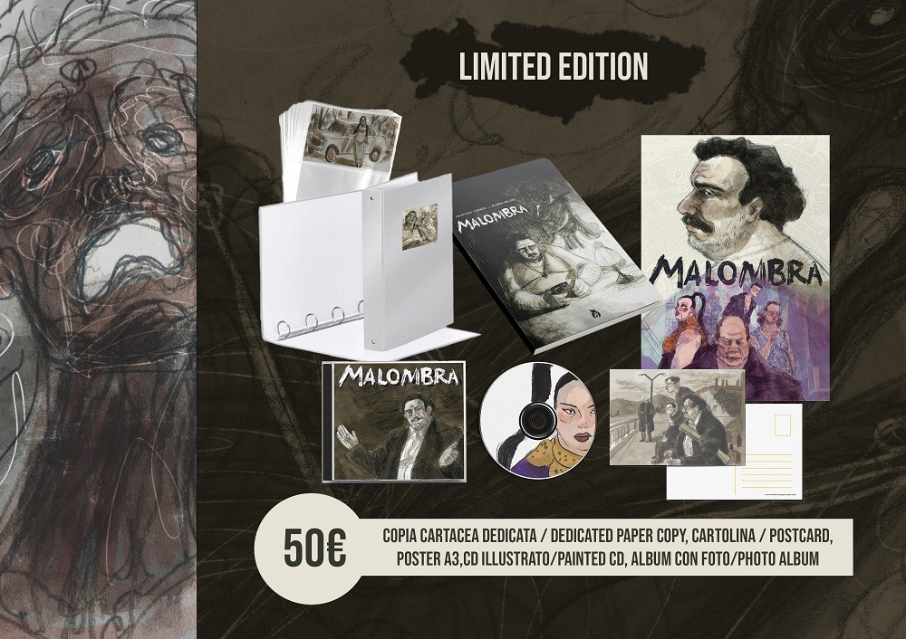 Oltre al libro saranno disponibili vari perks tra cui una cartolina e un poster A4, un CD dipinto a mano da Arianna Melone con cui accedere alla playlist ufficiale di Malombra e un album con varie finte-foto (realizzato in digitale) relative ai personaggi della storia, che ne approfondiscono il passato e la lore. Speriamo che i nostri lettori possano supportarci in maniera entusiasta come fatto fino ad ora e vi ricordiamo che tutti i pezzi aggiuntivi come il CD ufficiale e l’album fotografico sono limitati ed esclusivi e non verranno mai più replicati.”
