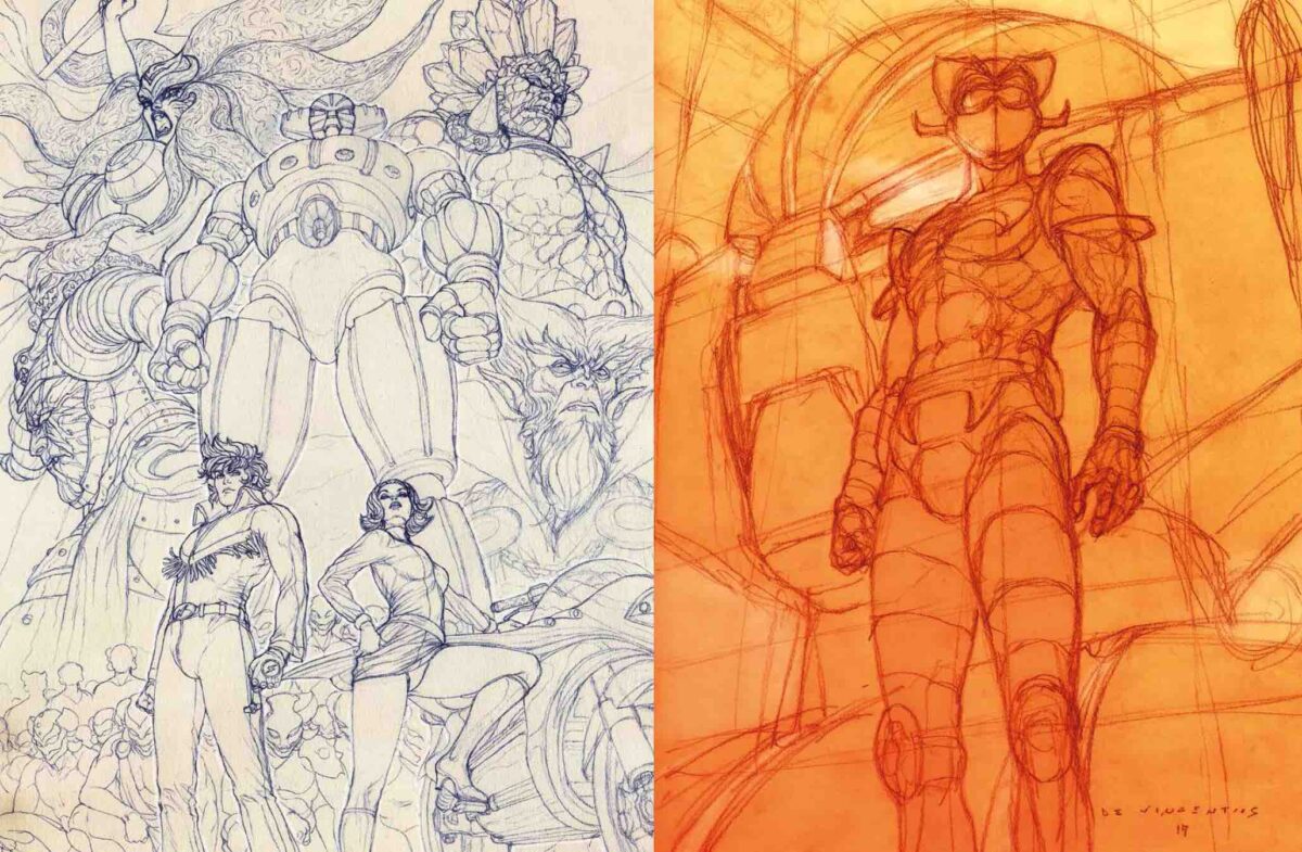 Il volume è di grande formato e si propone come un libro d’arte: la carta semipatinata e la scelta di pubblicare principalmente bozze e studi al vivo vuole sottolineare la fase puramente creativa del disegno che conserva le strutture anatomiche e prospettiche che l’artista pone come base del suo lavoro in un accorato e onesto legame con la tradizione più classica del rinascimento italiano. L’istinto sensuale ed erotico di De Vincentiis non cede mai e tutti i personaggi, dai Masters of the Universe a Lamù, a Bia la Strega o alle eroine di Mazinga fino a Jeeg, Polymar, Daitarn 3 e Kyashan sono rappresentati con un approccio realistico e ammiccante che non perde mai di eleganza, attento a non tralasciare i giganti robotici che sembrerebbero estromessi da una ricerca erotica e sensuale.