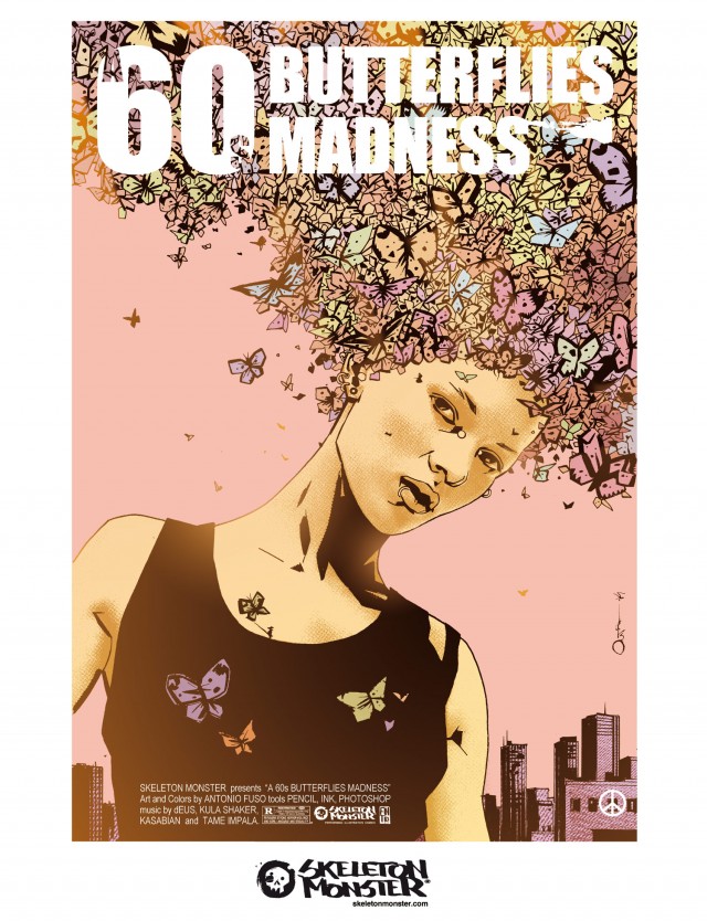 Antonio Fuso: Le radici del progetto sono già nel vecchio studio, il Michael Kane Studio, che era un luogo fisico che condividevamo con Gabriele Dell’Otto. C’era un nome ma non era un’associazione, una società, non c’erano scopi di massima. A quei tempi risale la realizzazione di Fuckland, ma finita quella esperienza ognuno si era concentrato sui suoi lavori ed è rimasto solo il nome del luogo fisico. Il che era anche una cosa piacevole, perché il lavoro del fumettista è un lavoro solitario e abrutente e noi avevamo risulto risolto lavorando insieme. Skeleton Monster è nato quando siamo venuti a conoscenza dell’organizzazione alle Officine Farneto, un locale che si trova nei pressi dello Stadio Olimpico, “Fermentazioni”, una tre giorni dedicati alla birra artigianale. Era un evento sulla falsa riga della presentazione di eventi newyorkesi: il filo conduttore era la birra artigianale, però nel contempo c’era la radio, la musica, una certa cura dell’estetica . Il locale voleva un’esperienza di tipo visivo da collegare all’evento. Io, Stefano Simeone e Giorgio Pontrelli abbiamo partecipato e ci siamo inventati appunto l’idea di realizzare live un’illustrazione, su un pannello di 3×2 metri, qualcosa di coreografico che ci siamo resi conto attirare molto l’interesse del pubblico. Perché si trattava di disegnare in un contesto altro dalle fiere del fumetto, dove un autore disegna per il libro che sta vendendo, un contesto alieno a quello della grafica, con gente che non masticava il linguaggio dell’illustrazione e tutto questo ha avuto un effetto ancora più dirompente. C’è stata molta partecipazione da parte del pubblico, tutti erano contenti e quindi ad un certo punto la volontà di creare qualcosa di altro tutti insieme si è concretizzata.