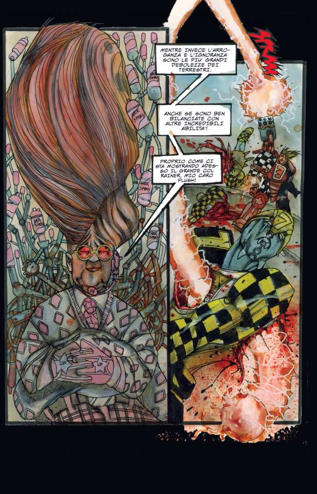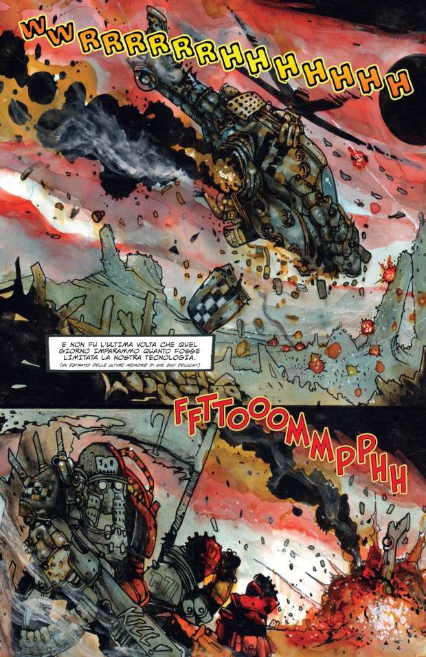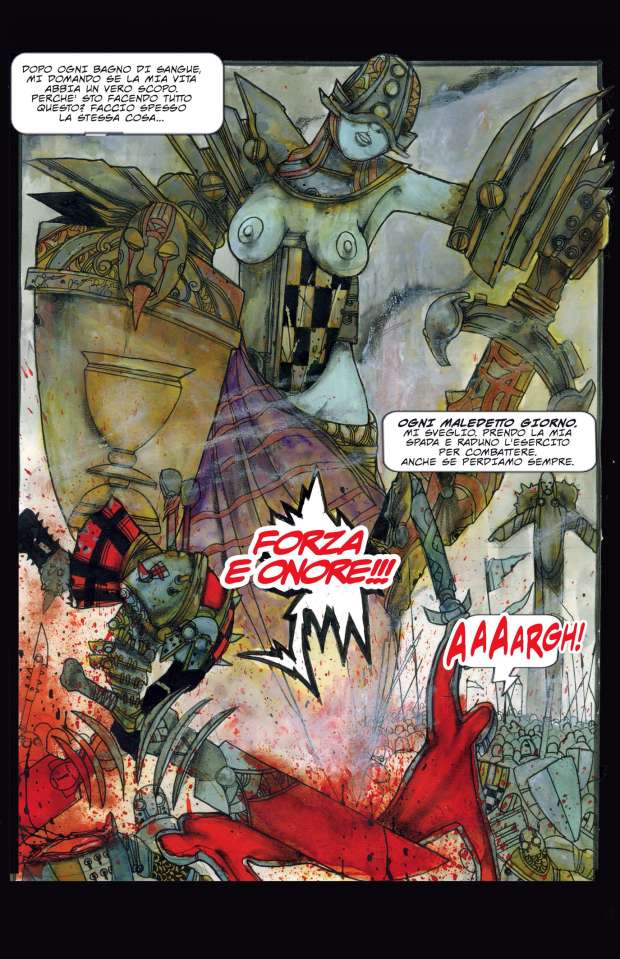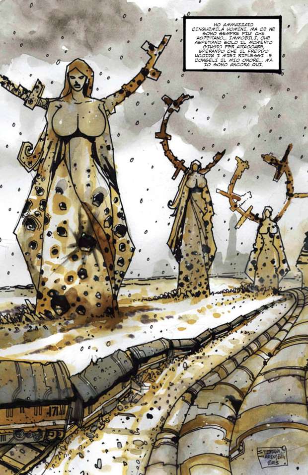 La costante stilistica dell’artista, invece presente sin da Metal Avalon, è l’ordinata entropia che permea tutti i disegni, incanalata nell’iperviolenza e nell’ipercinematismo presenti nelle tavole che fanno del fumettista toscano uno dei migliori eredi dell’estetica indie di autori del calibro di Simon Bisley e del Kevin O’Neill degli esordi, capace di assimilare e rielaborare in modo personale la lezione di quegli illustratori.