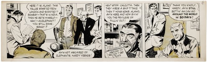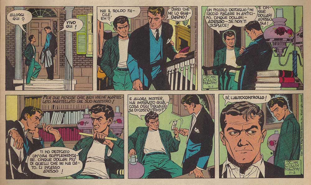 Non è neanche difficile capire il perché di questa sua affinità, visto il suo trascorso d’illustratore sportivo per varie riviste e testate del calibro di Esquire e Chicago Tribune. Nel 1949 propone una striscia di contenuto sportivo in cui il protagonista é il classico ragazzone americano: alto, spalle larghe, naso schiacciato da boxeur e campione di pesi massimi.