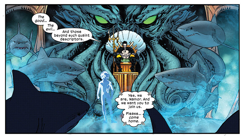 Questo è un esempio del tipo di domande a cui non ho intenzione di rispondere. Quindi non dirò se Namor (nome umano: l’Uomo-pesce di Cechov) tornerà o meno.