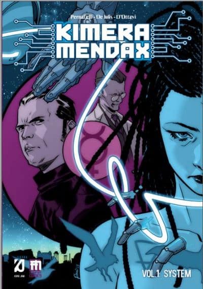 È da queste premesse che pare Kimera Mendax, primo volume (di 2) creato dal Collettivo Kuro Jam – composto dai disegnatori Enrico Carnevale, Mattia De Iulis, Giulia D’Ottavi, Stefano Garau e dallo sceneggiatore Gianluca Pernafelli – e ora pubblicato da Manfont. Un fumetto che non cerca l’originalità a tutti costi e non fa mistero delle sue origini cyberpunk, ma le pone al centro di un’opera che strizza l’occhio agli anni ’90, epoca in cui i romanzi di William Gibson avevano imposto un nuovo passo alla fantascienza.