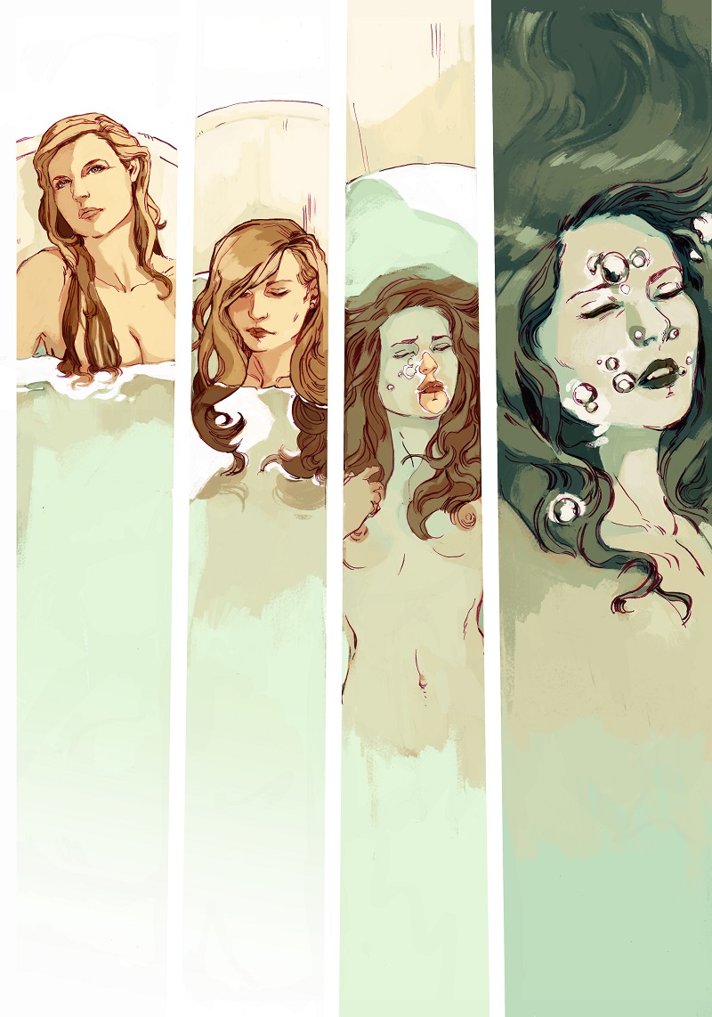 Kristen è il primo fumetto del collettivo La Stanza a vedere la luce in edizione cartacea, pubblicata da ALT! Associazione Lettori Torresi. È la storia di un’attrice che nasconde, dietro una maschera di superficiale bellezza ed eleganza, un vuoto esistenziale incolmabile. “Quale parte interpreterò stavolta?”, si chiede l’attrice. La strada per la felicità la conduce a percorrere una spirale in cui i ricordi reali si mescolano con la finzione dei ruoli interpretati, in una continua ricerca di se stessa e di qualcosa che sia vero, finendo però per trovarsi faccia a faccia con il demone della depressione.