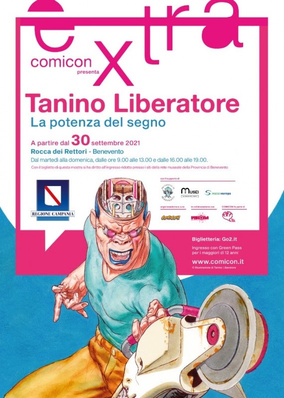 Apre il 30 settembre, alle ore 12.30 con la presenza dell’autore, alla Rocca dei Rettori di Benevento, la grande mostra antologica Tanino Liberatore. La Potenza del Segno nell’ambito del programma “COMICON Extra”, realizzato grazie al sostegno della Regione Campania (Direzione Generale per le Politiche Culturali). La personale di Liberatore si svolge grazie al supporto della Provincia di Benevento e della partecipata Sannio Europa, società quest’ultima che gestisce e promuove la rete museale provinciale.